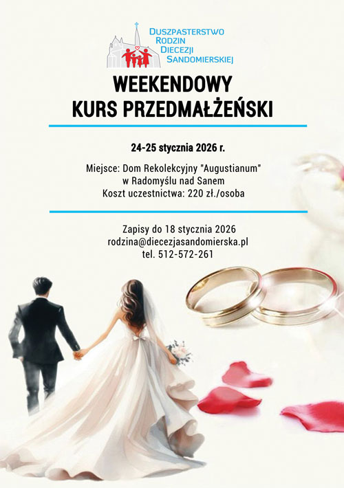 W sobotę 6 grudnia o godz. 10 kolejne spotkanie w ramach kursu na ceremoniarzy w Seminarium Duchownym w Sandomierzu. Proszę rodziców o podwiezienie swoich chłopców lektorów na to spotkanie.